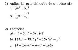 RESUELVE LOS SIGUIENTES EJERCICIOS CORRESPONDIENTE AL CASO DE FACTORIZACIÓN: CUATRINOMIO CUBO PERFECTO